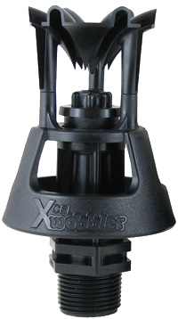 Wobblers are designed for frost protection and have very uniform coverage. Wobblers installed in test beds withstood winds up to 25 MPH & temperatures as low as 28°. They are an excellent sprinkler for small diameters up to 53.6 ft and 1 to 15 GPM.