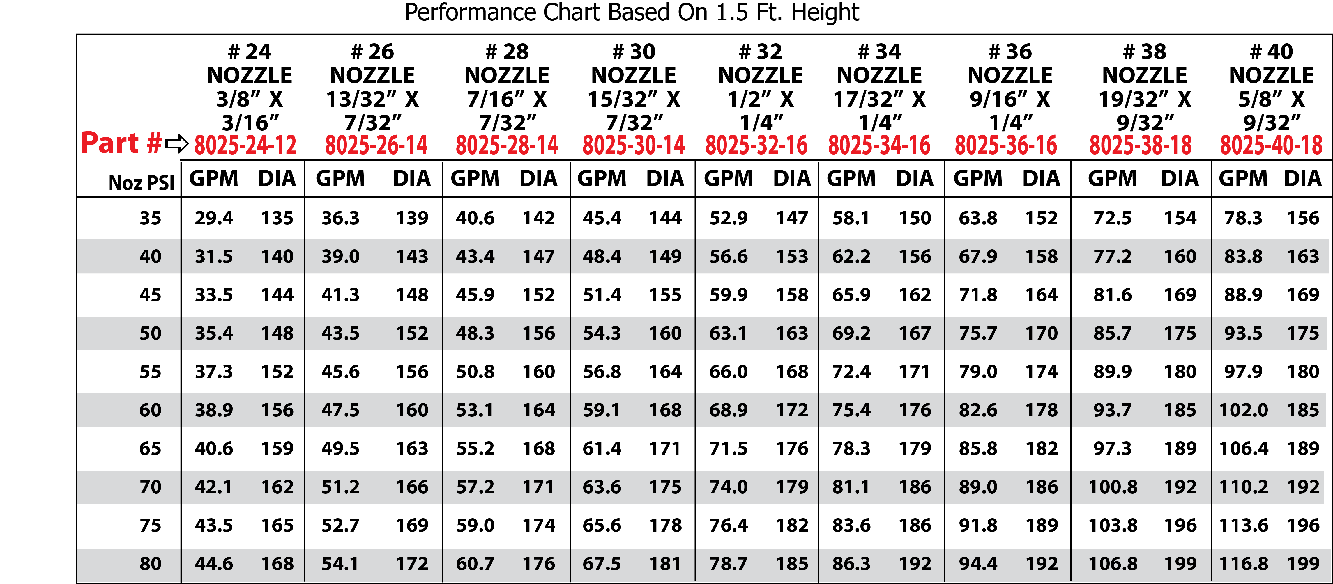 | Extra Nozzle (Specify Size) | $1.95 |